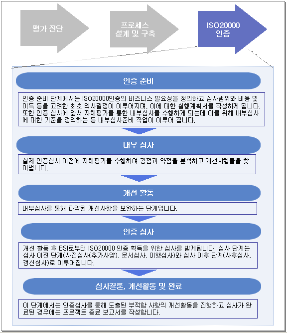 | ISO20000Àº ITSMÀ» À§ÇÑ Ç¥ÁØ ±Ô°Ý(Specification)À¸·Î ITIL±â¹ÝÀÇ ITSM ÇÁ·Î¼¼½º¸¦ ±ÔÁ¤Çϰí ÀÖ½À´Ï´Ù. ½Ã½º°ÔÀÌÆ®´Â ÄÁ¼³ÆÃÀ» ¼öÇàÇÏ¿© °í°´»çÀÇ ¼³°èµÈ ITSM ÇÁ·Î¼¼½º ¹× À̸¦ ±â¹ÝÀ¸·Î ±¸ÃàµÈ ITSM ÀÚµ¿È ½Ã½ºÅÛÀÌ ISO20000ÀÎÁõÀ» ȹµæ ÇÒ ¼ö ÀÖµµ·Ï µµ¿Í µå¸³´Ï´Ù. |